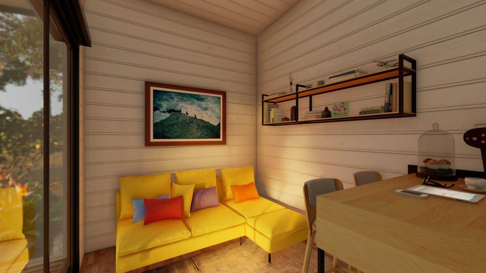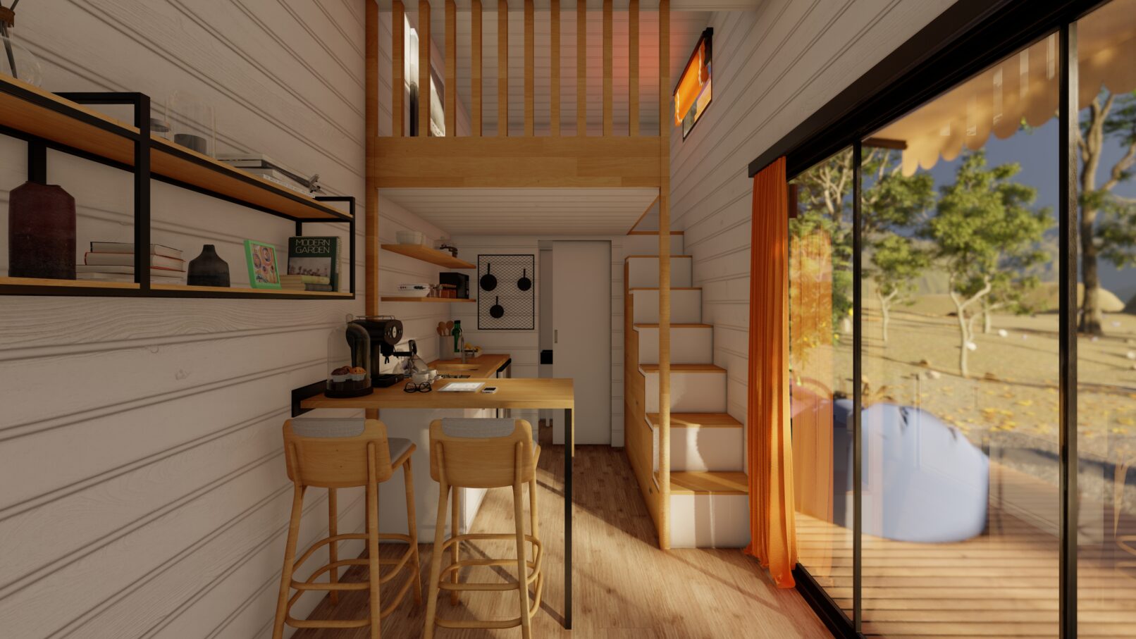 Alanı kullanmanın akıllı yolları ve yenilikçi teknolojilerin kullanımı, Tiny House tasarım ve yapımında karakteristiktir. Küçük Ev 50 m2’ye kadar, ideal olarak (kısmen) kendi kendine yeterli, yüksek kaliteli ve tam zamanlı bir konut olarak işlev görüyor.